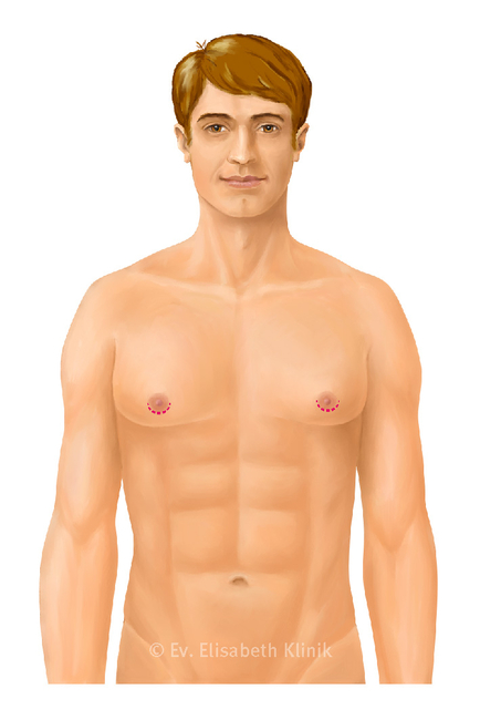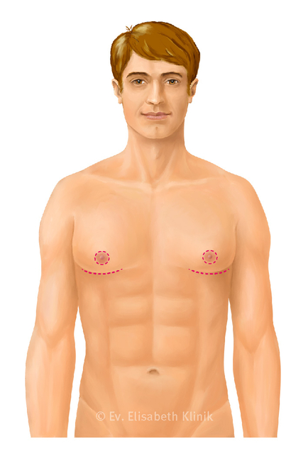 Die Entfernung von vergrößertem Drüsengewebe macht hingegen einen etwas aufwändigeren Eingriff erforderlich. Nach ärztlicher Abklärung der Ursachen wird das Gewebe dabei durch einen halbmondförmigen Einschnitt im unteren Bereich des Warzenhofes entfernt. Moderne Nahttechniken stellen eine unauffällige Narbenbildung sicher.